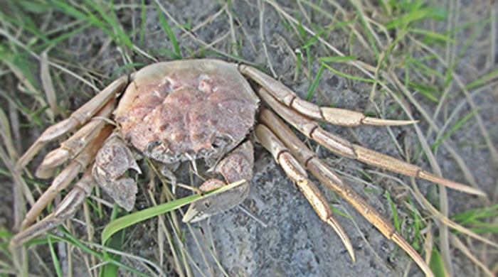 The Chinese mitten crab is a small to medium sized crab, named for the dense patches of bristles (“hair”) on its claws.
